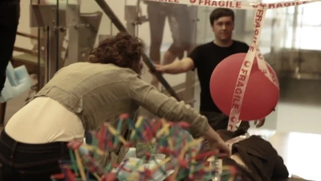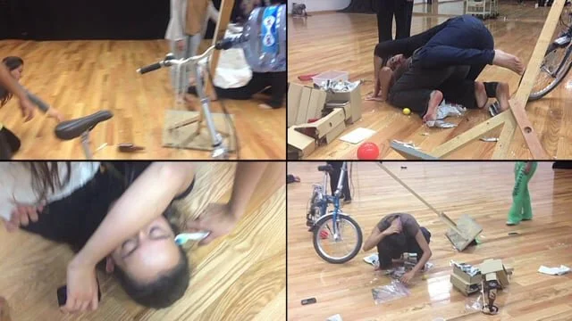 Making a Scene – Topological Media Lab, Concordia University, Montreal, 2014 (1 minute). Improvisation with found objects led by Mayra Morales, following a Deep Listening process by Doug Van Nort; with members of SenseLab and Topological Media Lab.